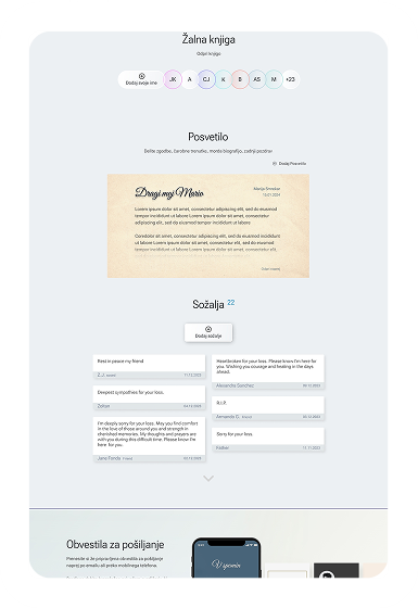Že pripravljena Obvestila o času pogreba za pošiljanje preko mobilnega telefona. Enako pripravljene tudi Zahvala in Izreki sožalja.